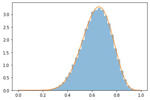 本記事のアルゴリズムの記事はこちらです。目標分布を以下のベータ分布とします。正規化項は除きます。提案分布は一様分布とします。とします。 この時、を満たしています。 ############################### # 棄却サンプリング ##########################…